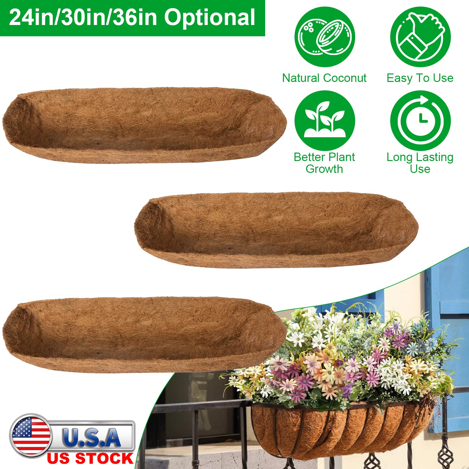 Home > 3Pcs 24in/30in/36in Trough Coco Liners For Planters Coconut Coir Planter for Window Box Hanging Trough Basket Half Moon Planter Liner Replacement For