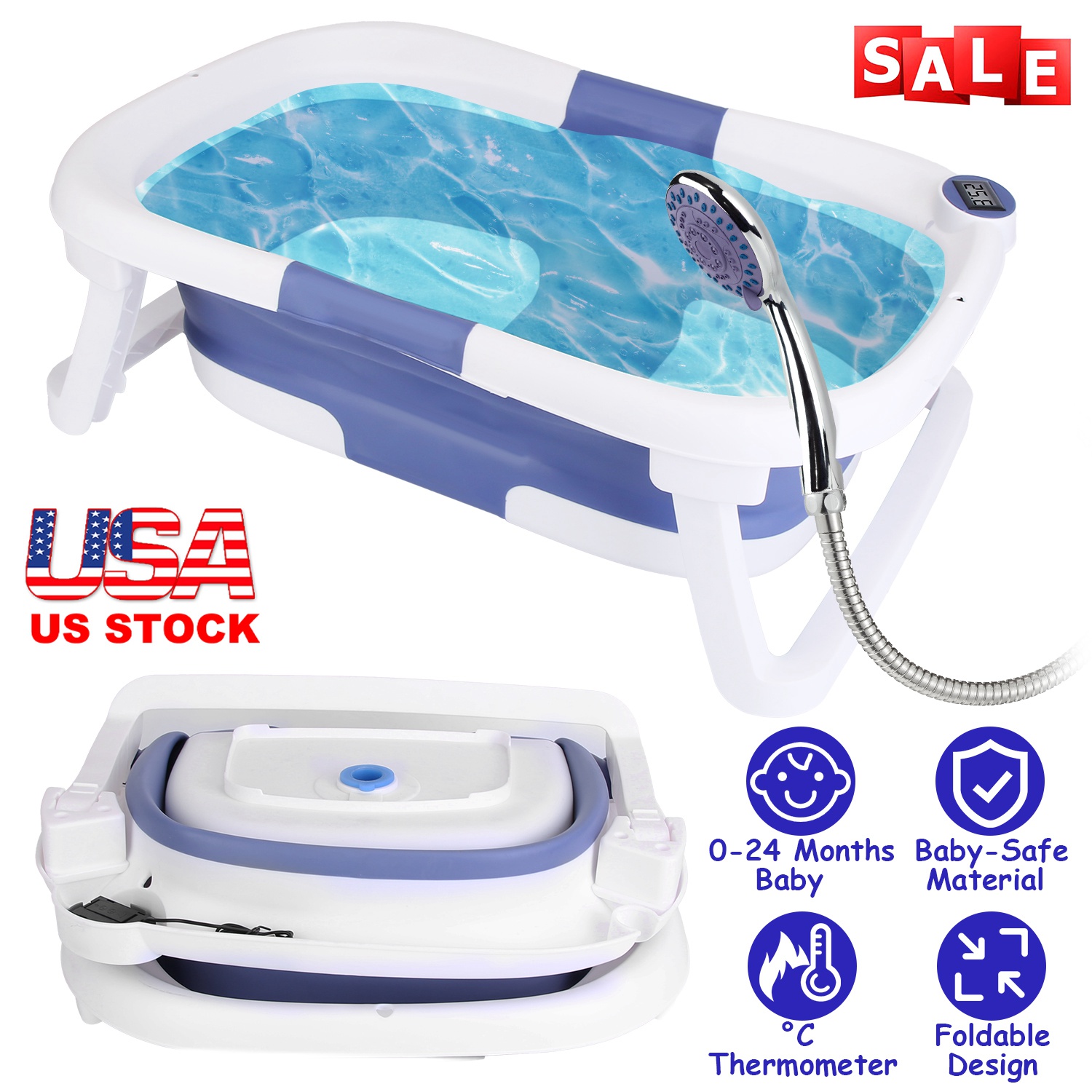 Home > Baby Bath Tub with Thermometer Collapsible Travel-Friendly 0-24Months Baby Bathtub with Drain Hole For Newborn Infant Toddler Odorless Non-Toxic Folda