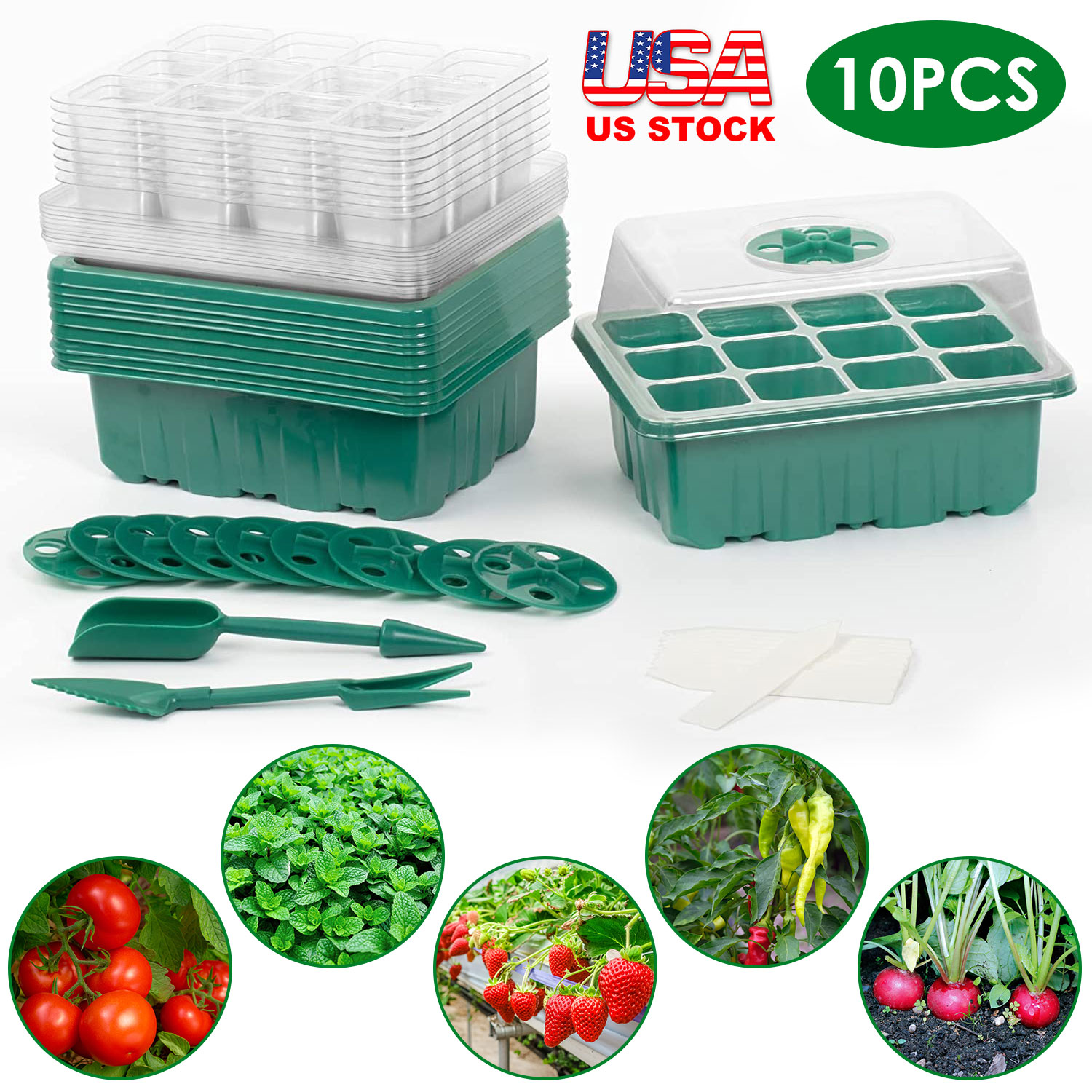 Home > 10Pcs Seed Starter Tray Kit Reusable Overall 120Cells Seeding Propagator Station Greenhouse Growing Germination Tray with Humidity Dome Label 2Pcs Gar