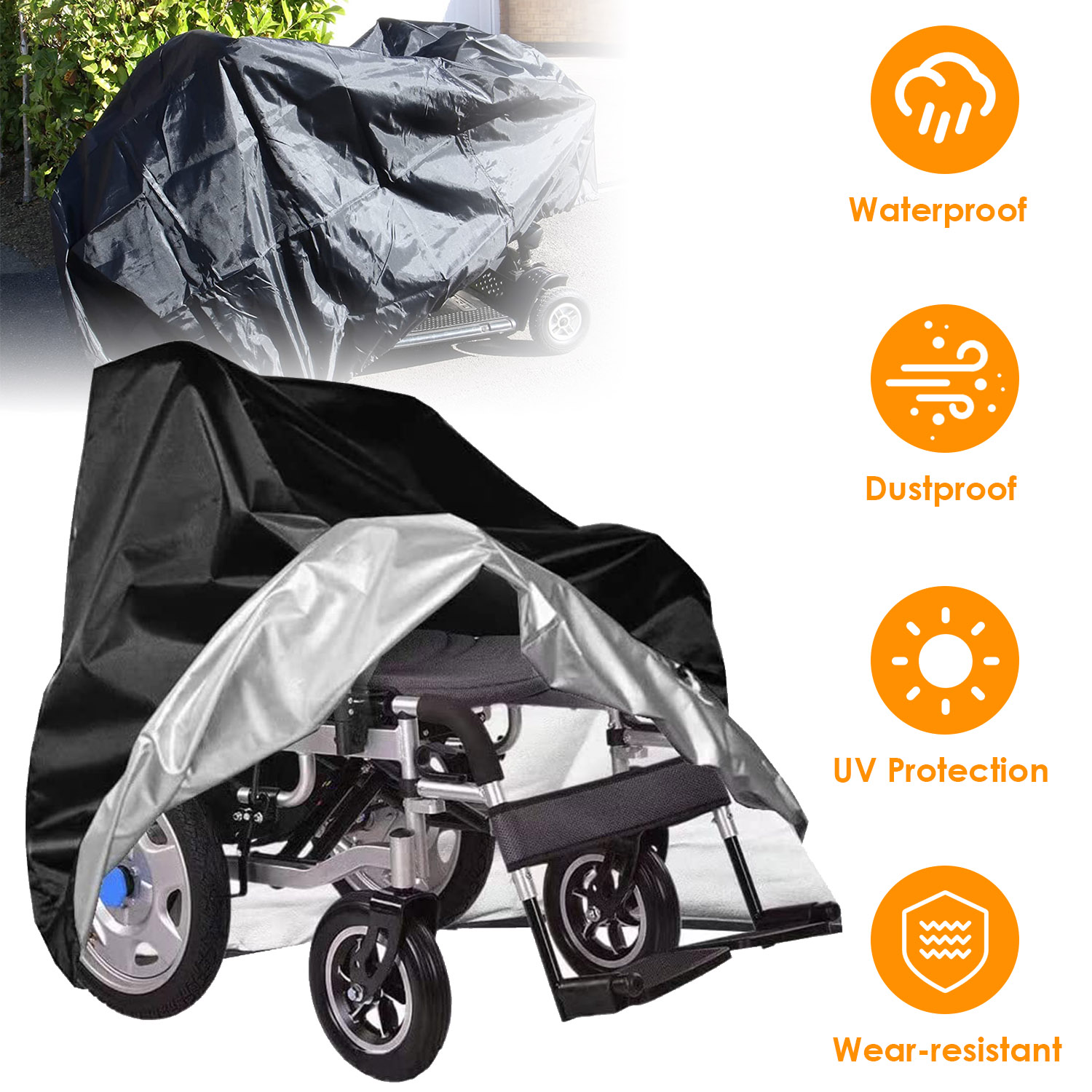 Home > Scooter Protective Cover Waterproof Motorcycle Mobility Wheelchair Shelter Protector with Storage Bag against Sun Water Dust 74.8x28x46.1in