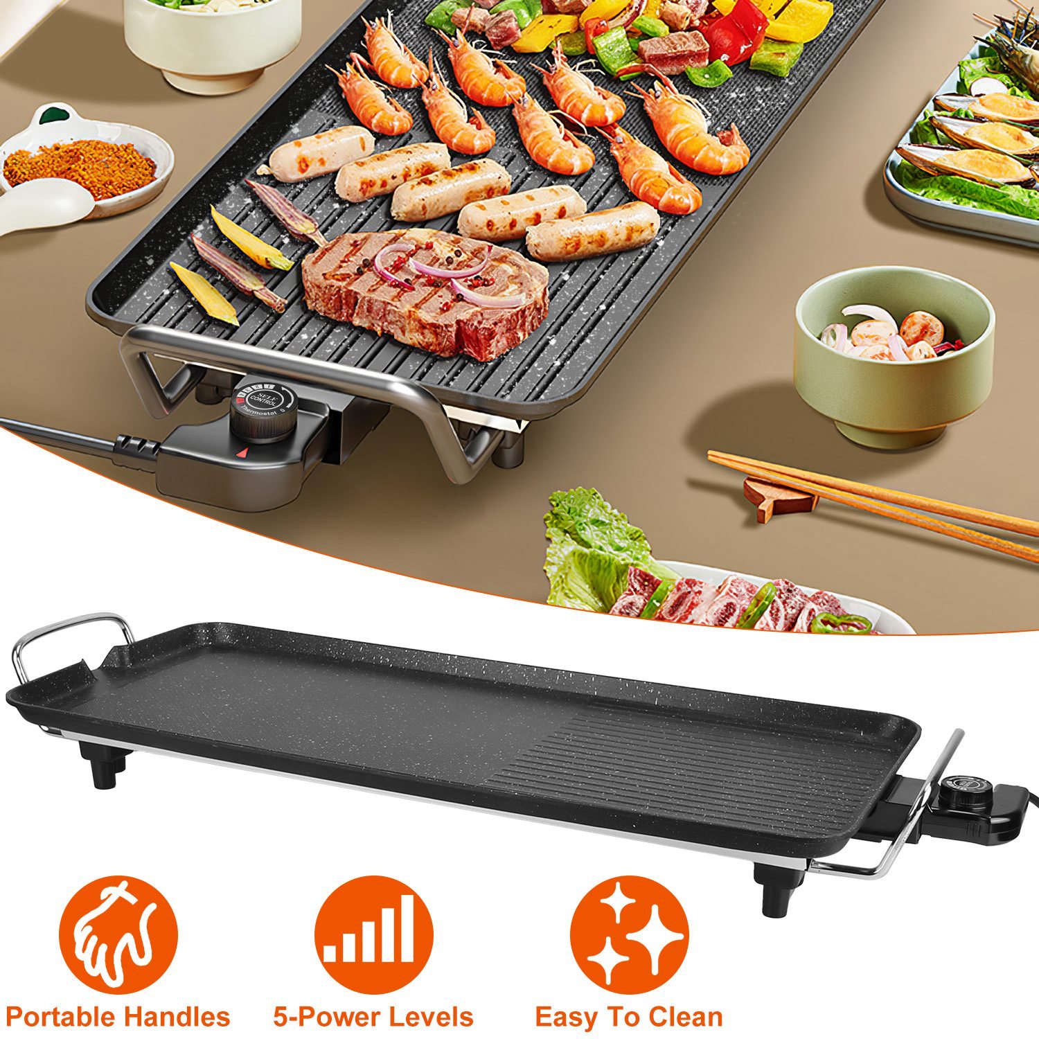 1500W Electric Barbecue Grill Hot Plate Cooking BBQ Griddle Non-Stick Table Top Grill Griddle for Indoor Outdoor Camping Picnic