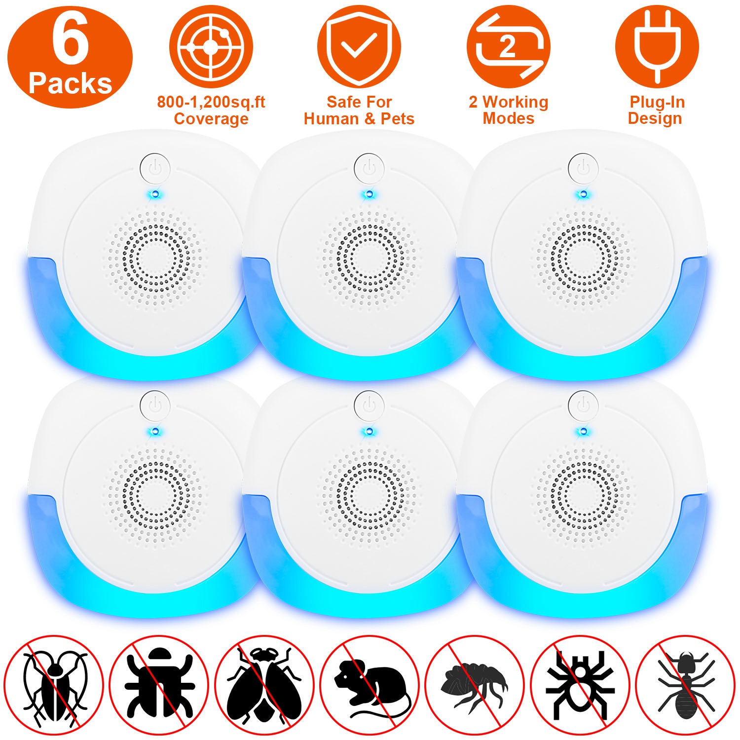 Home > 6 Packs Ultrasonic Pest Repellers Plug-In Indoor Pest Control Mouse Repellent Chaser Deterrent for Home Kitchen Office Warehouse Hotel